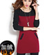 冬装加绒加厚女士保暖内衣拼色中长款包臀韩版修身长袖打底衫女装
