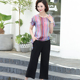 时尚妈妈气质套装2017新款40-50岁中年女装夏装上衣+阔腿裤两件套
