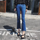 韩版显瘦喇叭裤女九分裤子女士百搭不规则牛仔裤女春夏季2017新款