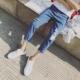 九分裤男士膝盖破洞牛仔裤男夏季新款青少年韩版潮修身小脚9分裤