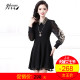 伊莎喏秋装新款欧根纱连衣裙女中长款蕾丝刺绣裙子长袖修身大摆裙