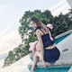 亦美珊泳衣女小胸聚拢连体裙式荷叶边遮肚保守学生韩国温泉游泳衣