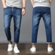 夏季松紧牛仔裤男高弹力胖子小脚裤潮肥佬修身九分裤薄加肥加大码