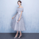 香槟色伴娘服2017新款一字肩中袖晚礼服中长款姐妹裙伴娘礼服短款