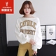 韩国miamasvin春季女装韩版摩登一字领落肩印花宽松纯棉长袖T恤
