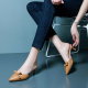 茜茜仙子新款粗跟单鞋女夏 欧美真皮尖头中跟凉鞋蝴蝶结浅口女鞋