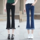 春夏季毛边微喇牛仔裤女显瘦不规则七分裤韩版小喇叭裤学生牛子裤