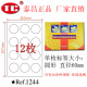 泰昌A4不干胶打印纸12格自粘性标签贴纸手写圆形直径60mm No1244