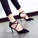 韩版交叉绑带高跟鞋女春夏尖头细跟性感百搭凉鞋2017新款单鞋女鞋