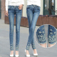 2017春季新款牛仔裤女 小脚显瘦铅笔裤加长款长裤女士紧身裤抓纹