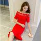 敬酒服新娘夏季结婚晚礼服一字肩连衣裙女红色短款订婚回门装显瘦