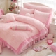 韩式可爱公主床上用品全棉粉色蕾丝被套纯棉床裙三四件套少女时代