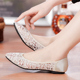 夏季韩版蕾丝网面单鞋凉鞋尖头平底镂空网鞋女鞋平跟妈妈鞋大码鞋