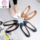 春夏新款牛皮舒适低跟蝴蝶结单鞋工作牛筋底妈妈鞋女鞋豆豆鞋