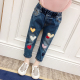 天天特价童装女童牛仔小脚裤2017春装新款儿童爱心贴布牛仔裤长裤