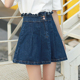 2017春夏新款韩版高腰百搭牛仔裙荷叶边学生半身a字短裙百褶伞裙