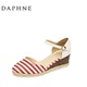 Daphne/达芙妮 小清新甜美休闲拼色蝴蝶结坡跟鱼嘴凉鞋1014303112