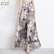 清水灵籽春秋新款加长厚款阔腿裤天丝裤裙裤长裤 大码印花花裤女