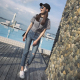 ZQ子晴定制春季新款水洗小脚修身显瘦拉链高腰破洞九分牛仔裤女