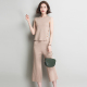 2017春季新款小香风韩版高腰修身阔腿九分裤无袖针织背心两件套裤