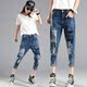2017春夏款破洞牛仔裤女宽松7分裤休闲贴布韩版八分补丁哈伦裤潮