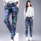 春夏九分裤女高腰彩绘弹力牛仔印花小脚裤哈伦垮裤个性宽松萝卜裤