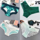 时尚绿色女士内裤控 欧美性感蕾丝平角裤纯棉低腰无痕冰丝三角裤