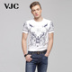 VJC威杰思2017夏季新款时尚印花男士圆领短袖修身T恤衫潮