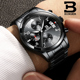 BINGER宾格手表男士手表精钢男表猎人系列三眼跑秒黑带黑面间金