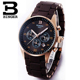 正品BINGER宾格手表自动机械表男表商务腕表玫瑰金皮白双日历