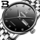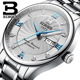 正品BINGER宾格手表男士全自动机械表男表幸运轮双日历钢白