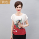 秋色妈妈装t恤女修身2017新款夏季中年时尚印花优雅圆领显瘦女T恤