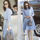 香港代购2017夏季新款韩版大码修身显瘦女装短袖中长款牛仔连衣裙