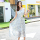 夏季女连衣裙印花腰带雪纺大码大摆长款波西米亚沙滩无袖连衣裙
