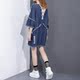 2017夏装新款中长款宽松一字领九分袖破洞T恤女须边牛仔纯色上衣