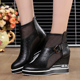 石米令春秋款真皮女鞋单皮鞋坡跟时尚蝴蝶结真皮内里透气女士单鞋