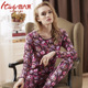 意大莱女士中老年圆领加大码秋衣秋裤纯棉印花老人内衣棉毛衫6722