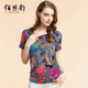 佰丝韵2017夏季真丝针织荡领印花短袖女T恤打底衫上衣 100%桑蚕丝