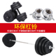 家用包胶杠铃哑铃两用组合套装杠铃片直杆小孔男士 举重健身器材