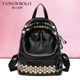 唐王保罗双肩包女真皮女包韩版学院风简约铆钉牛皮旅行背包书包潮