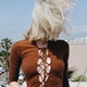 【包邮】欧美 复古晚晚 FP胸前镂空深v绑带交叉针织衫上衣