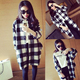 韩范英伦学院风宽松中长款长袖衬衫女春学生格子衬衣开衫外套上衣