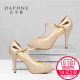 Daphne/达芙妮新款女鞋 优雅镂空高跟T型带通勤鱼嘴鞋 单鞋女春