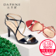 Daphne/达芙妮凉鞋女夏新品女鞋时尚细高跟交叉绑带金属露趾