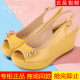 Daphne/达芙妮春夏单鞋 新品 坡跟甜美一字式扣带鱼嘴鞋 单鞋女春