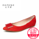 Daphne/达芙妮女鞋春 金属方扣尖头平底平跟羊皮通勤单鞋