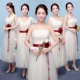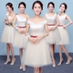 伴娘礼服白色短款新款秋季伴娘团小礼服裙演出舞台主持礼服姐妹裙