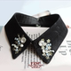 韩国复古玻璃纱刺绣蕾丝假领子女 白色优雅钉钻水晶 衬衫领部装饰