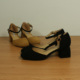 2017春新款韩版简约百搭中跟绒面单鞋女磨砂粗跟方头绑带高跟鞋潮