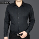 2015秋冬新款金丝绒印花长袖衬衫男高档商务时尚修身免烫黑色衬衣
